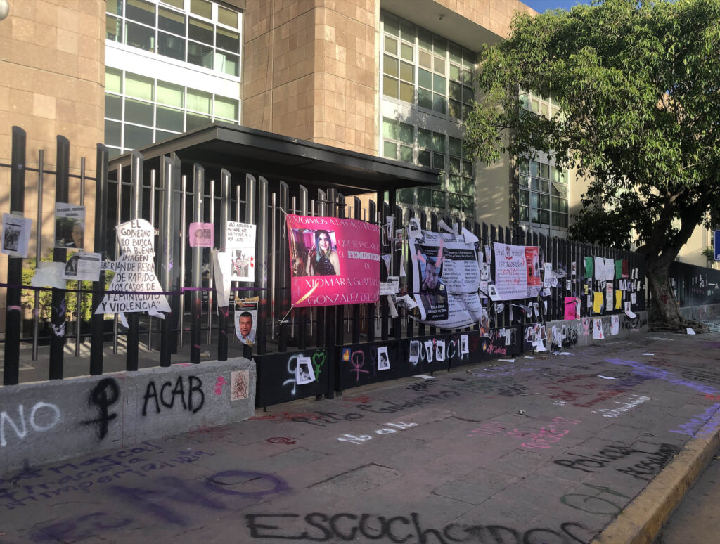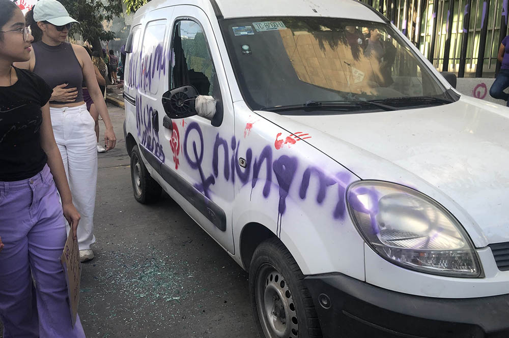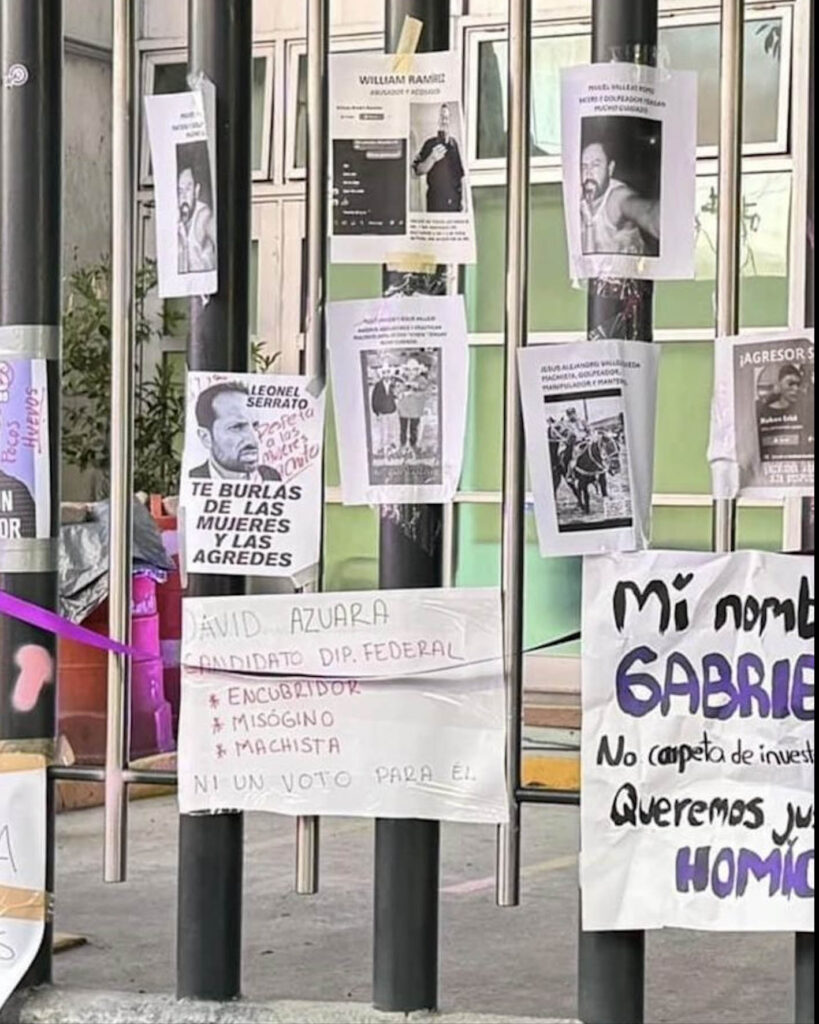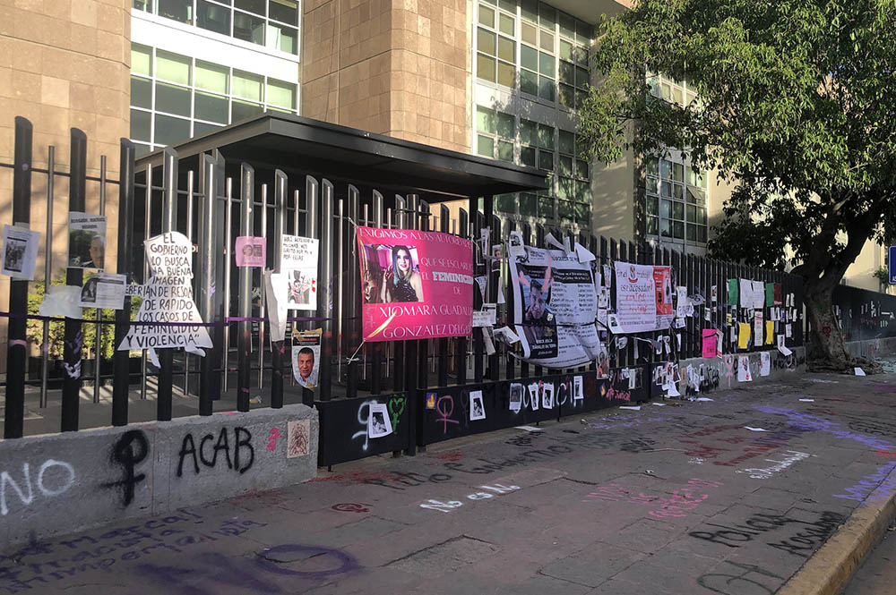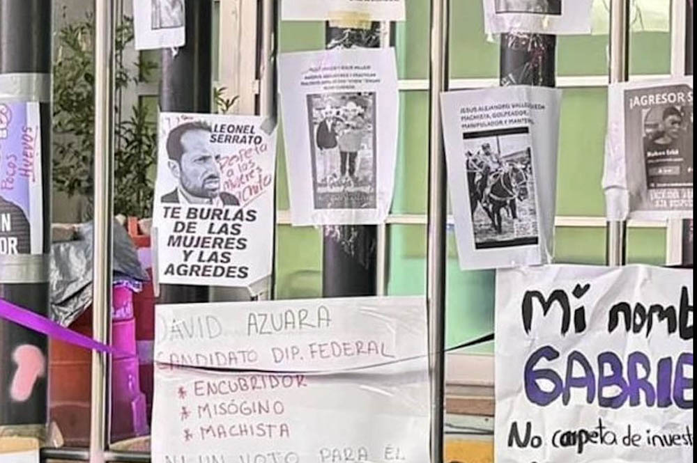 El inmueble quedó tapizado de lonas, pancartas y hojas con denuncias, lo mismo contra deudores alimentarios que políticos, agresores, machistas y misóginos. También hubo algunos vidrios dañados y a unos metros de ahí, una camioneta de la Fiscalía con pintas y cristales rotos, menos rotos que el alma de quienes han perdido a sus seres queridos.