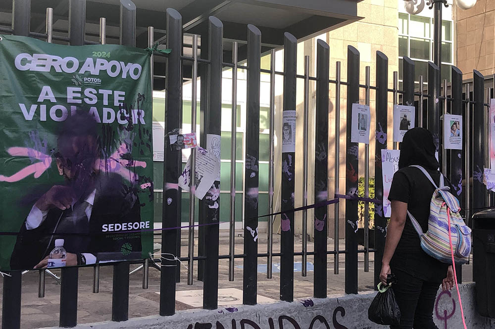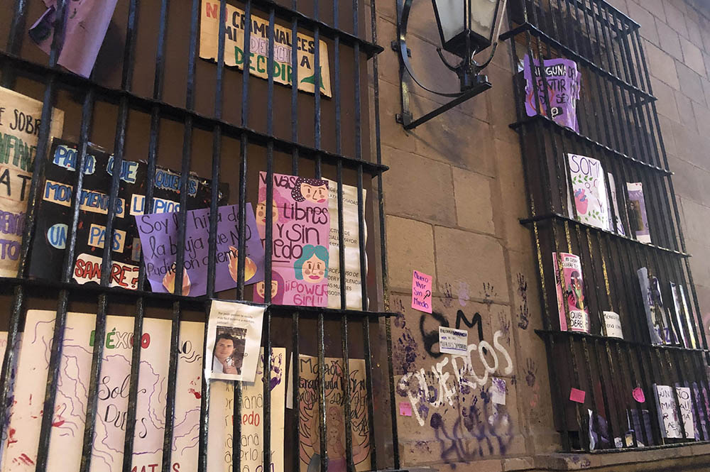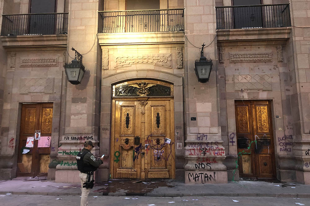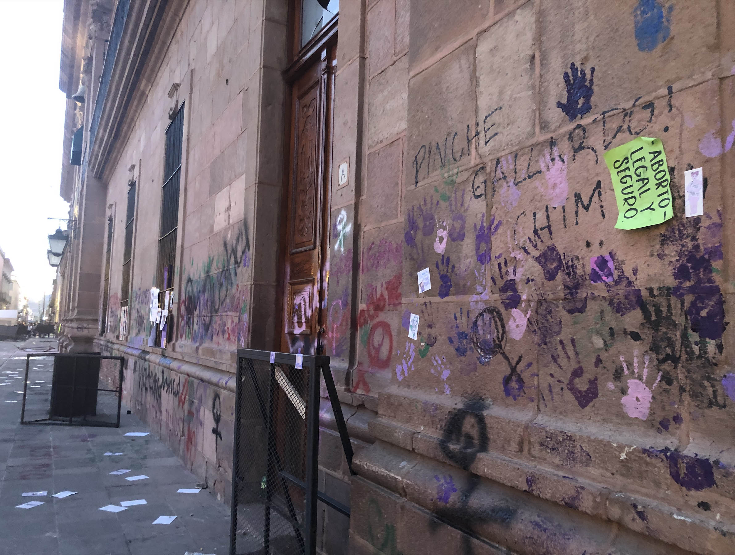 El inmueble quedó tapizado de lonas, pancartas y hojas con denuncias, lo mismo contra deudores alimentarios que políticos, agresores, machistas y misóginos. También hubo algunos vidrios dañados y a unos metros de ahí, una camioneta de la Fiscalía con pintas y cristales rotos, menos rotos que el alma de quienes han perdido a sus seres queridos.