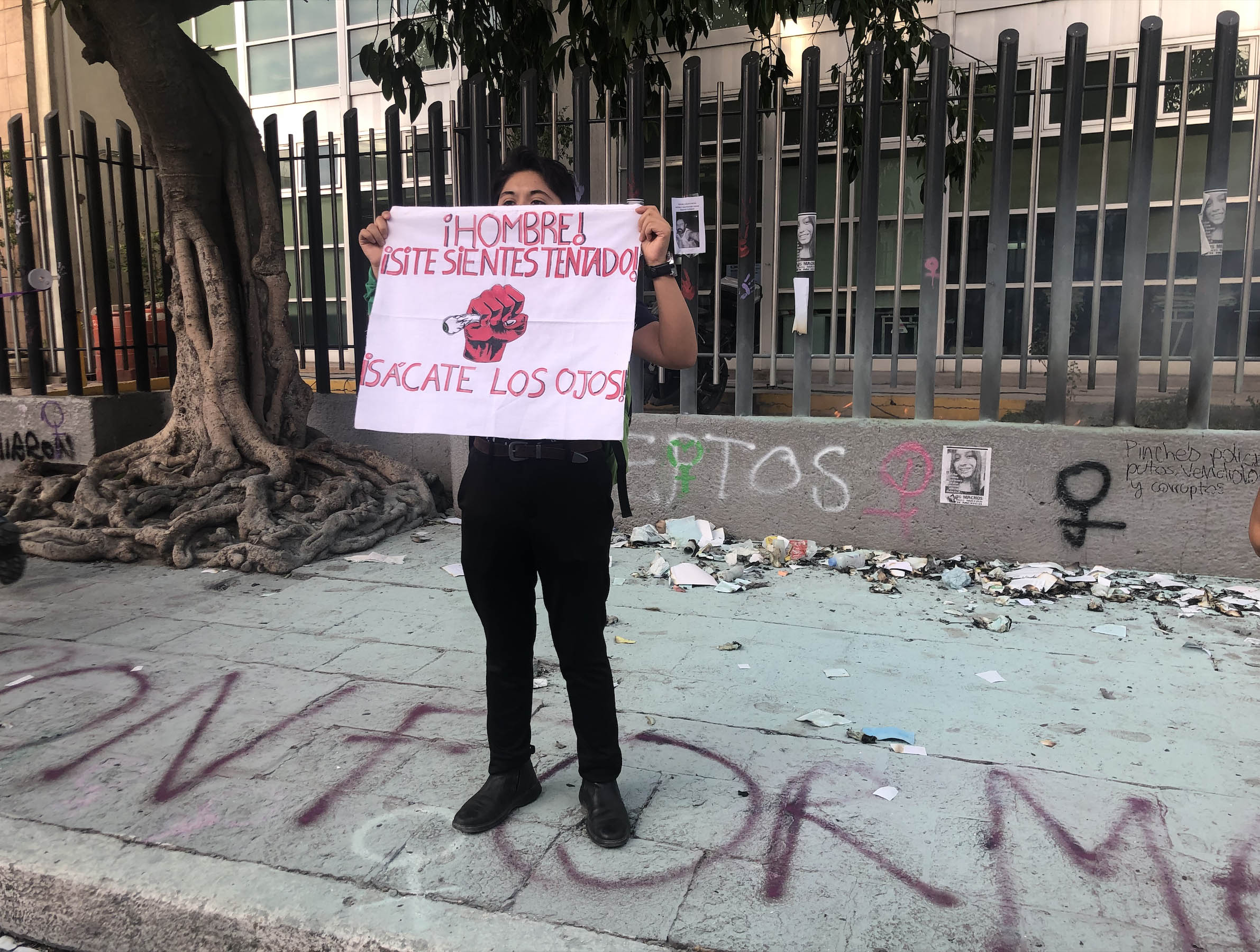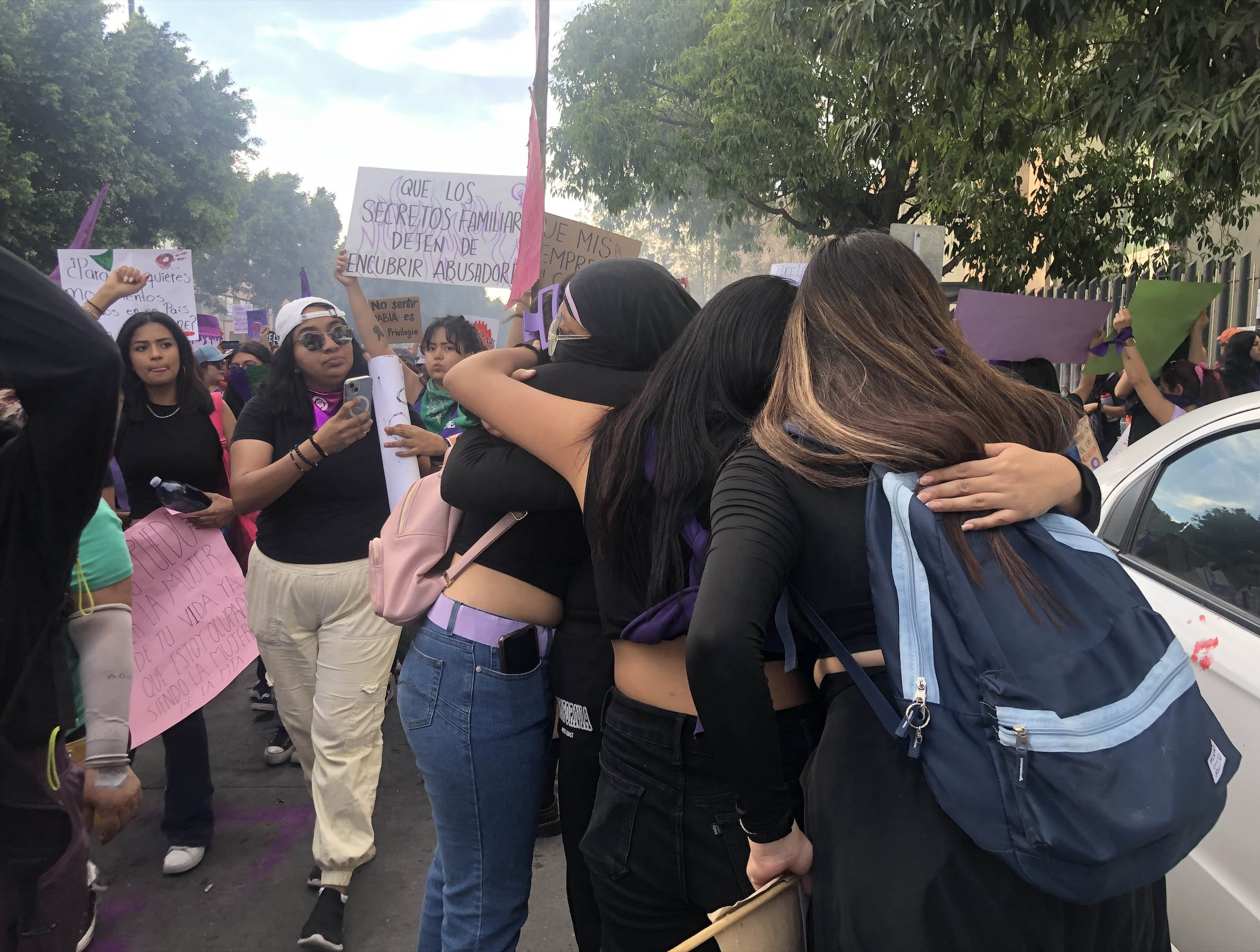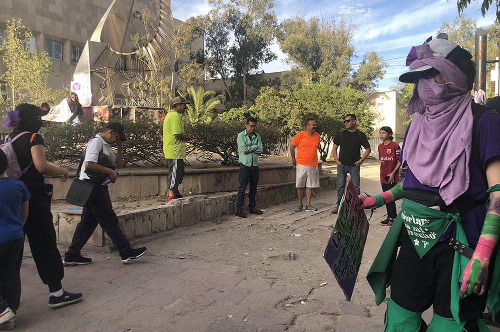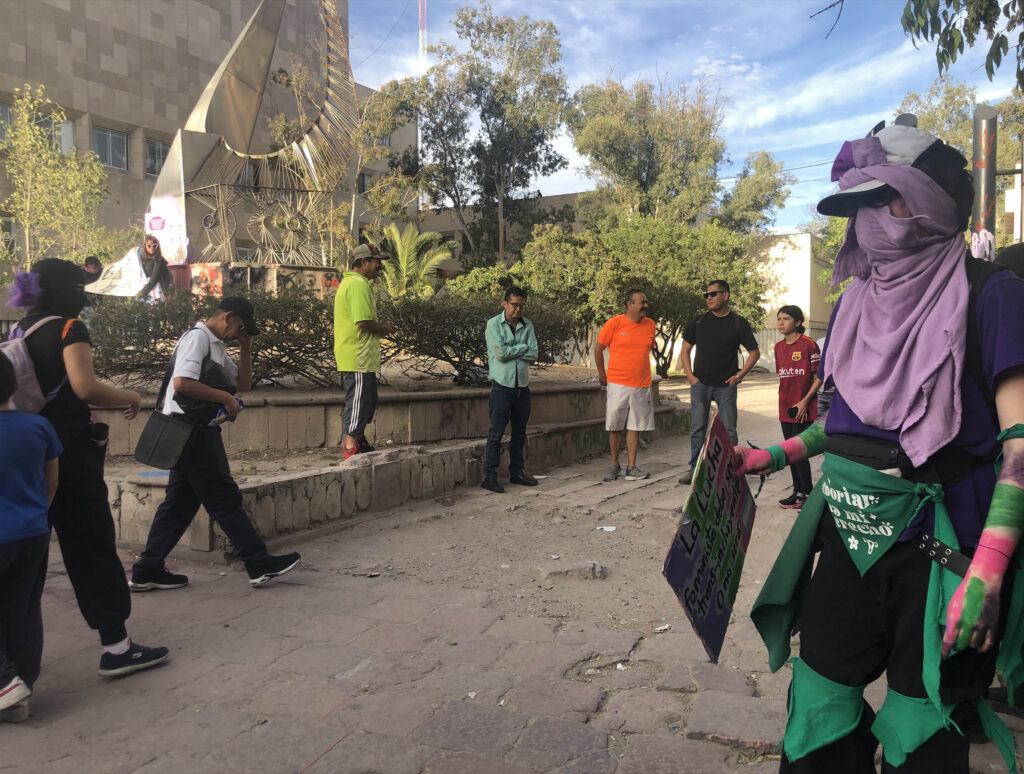 Y así como hubo hombres “mirones” que se ganaron el rechazo verbal de quienes salieron a protestar, también se observó a quienes acompañaron a la distancia a algunas integrantes, solo de vez en cuando se acercaban a ellas para preguntarles si necesitaban algo u ofrecerles agua. Después se retiraban para seguirlas sin interferir en la movilización.