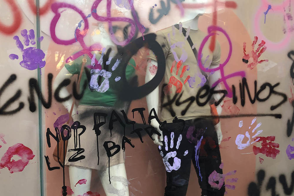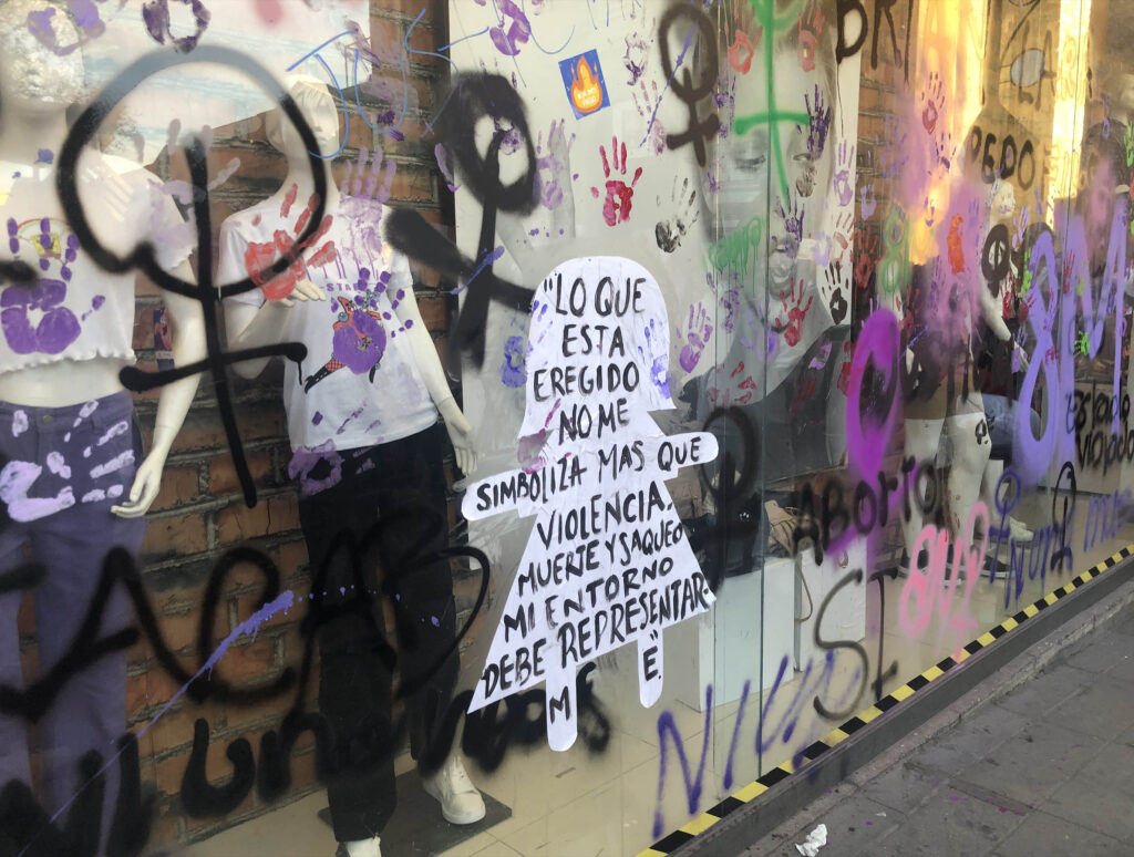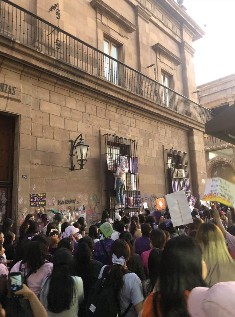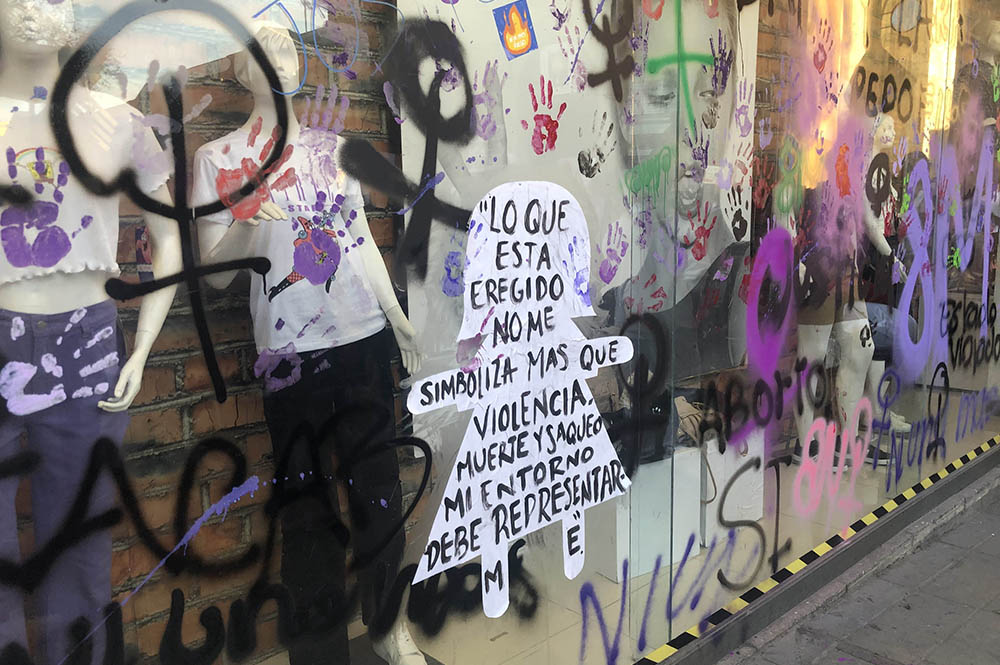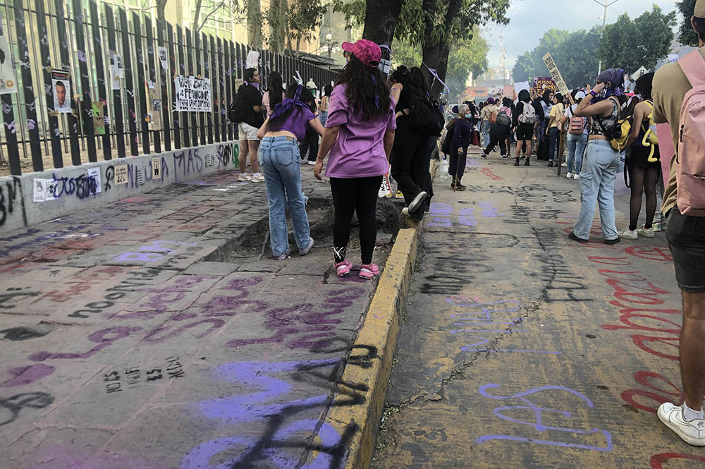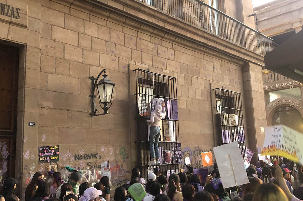Las mujeres continuaron por la calle Los Bravo y a su paso, muchas dejaron su huella con pintas y mensajes en las fachadas de tiendas, casas y aparadores. La mayoría se dirigieron hacia la Plaza de Armas y se detuvieron en recintos oficiales como Palacio Municipal, Congreso del Estado y Palacio de Gobierno, donde también quedaron plasmadas la consignas, las críticas por la inacción oficial y el reclamo por la impunidad aún existente.