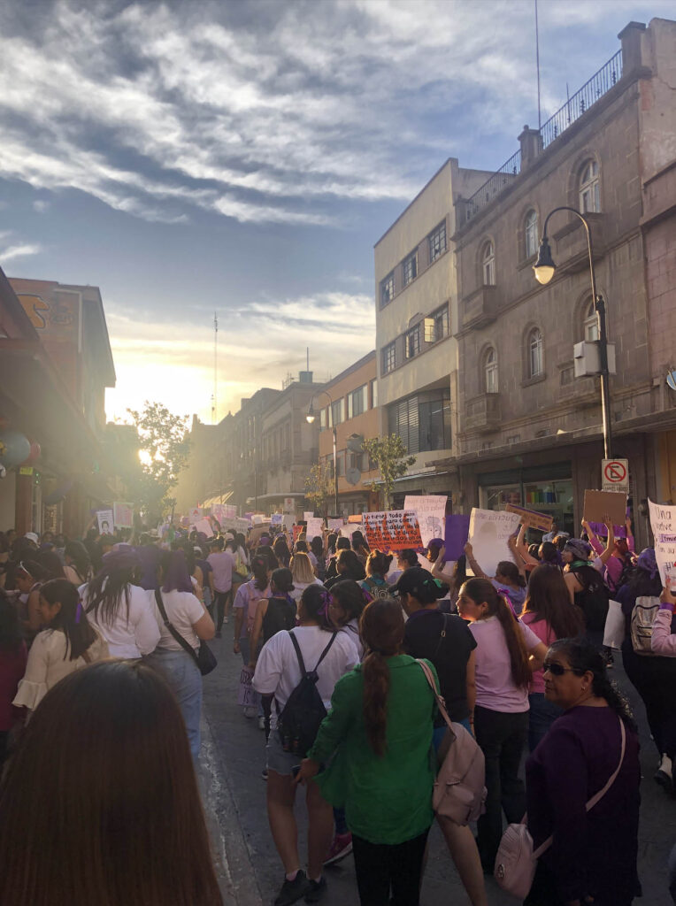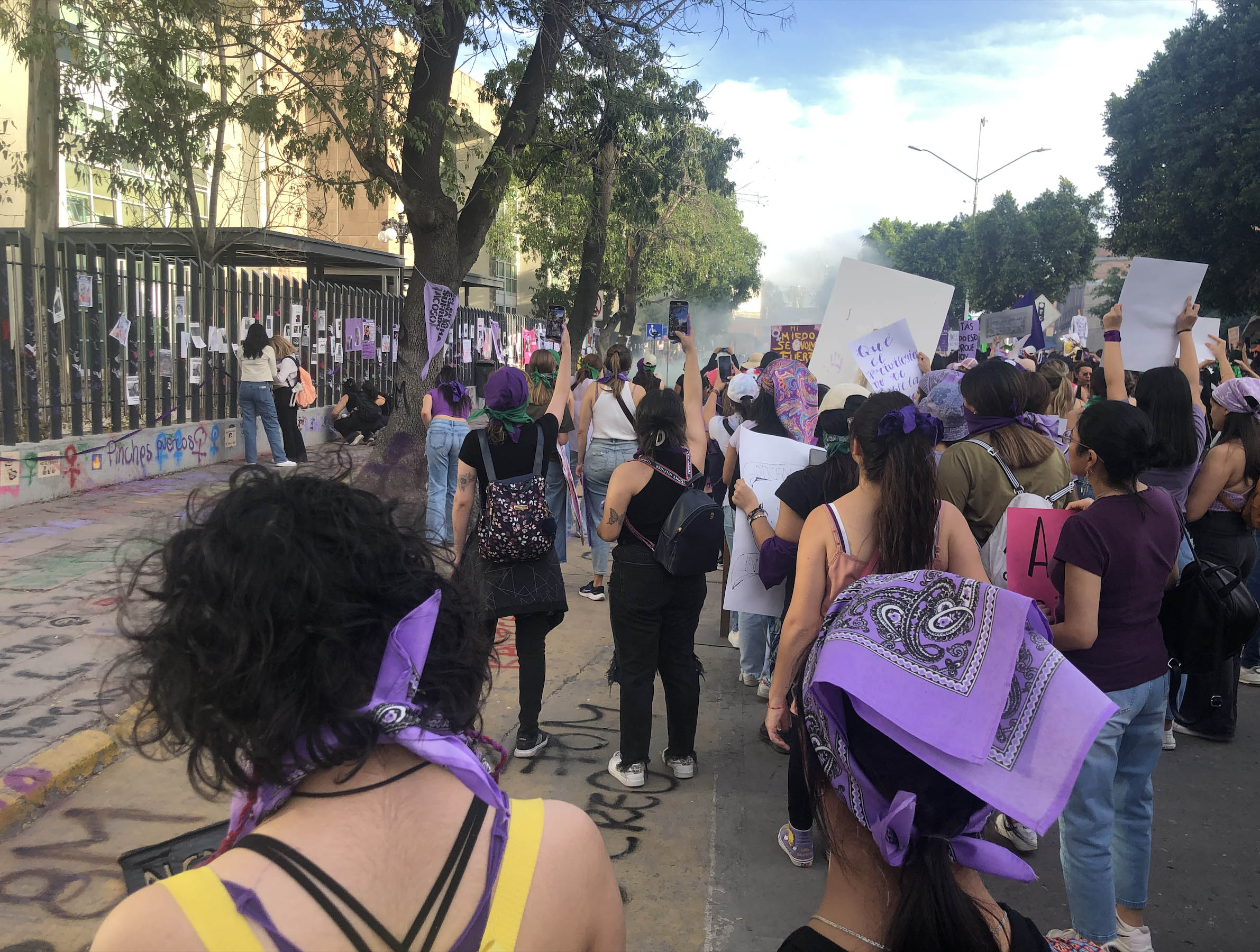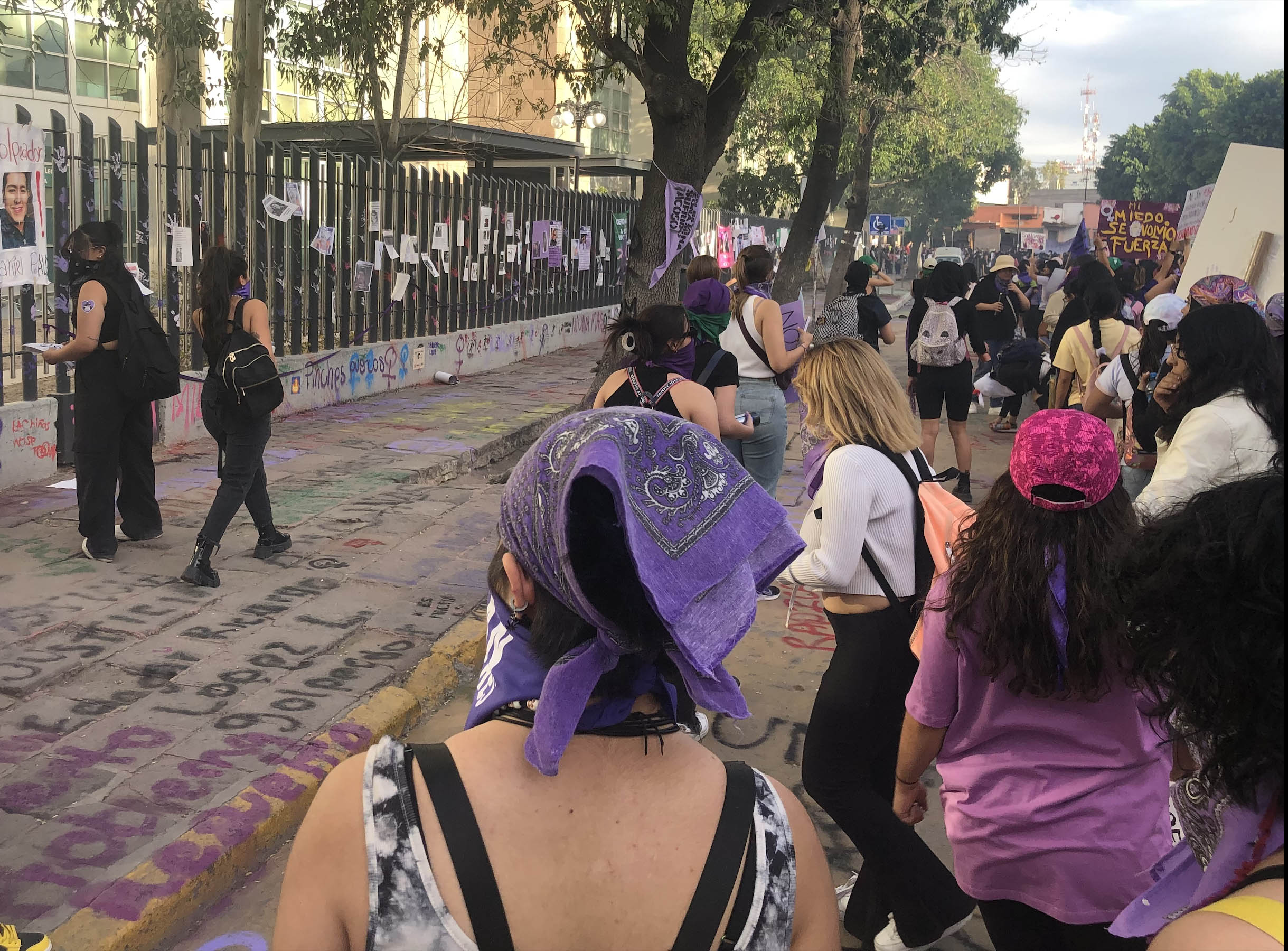 La movilización partió del Barrio de Tlaxcala y pronto, cuadras enteras del Eje Vial comenzaron a pintarse de color morado, conforme avanzaron niñas, adolescentes, universitarias, profesionistas, madres, abuelas… Todas unidas en una sola voz, la de la justicia.