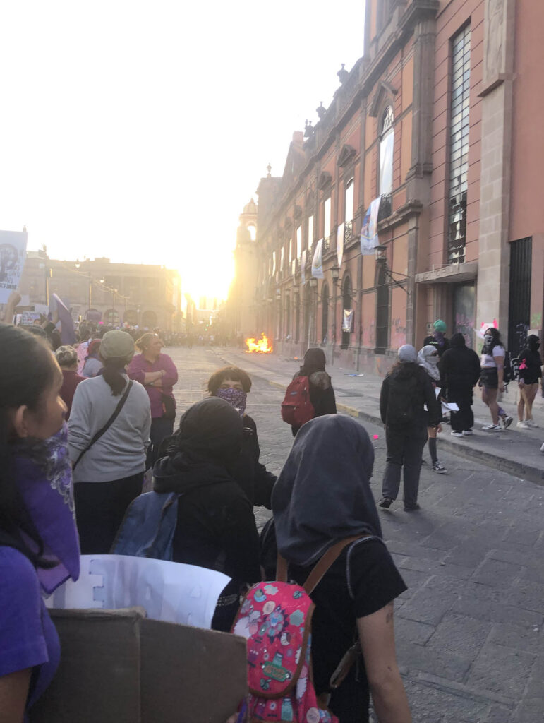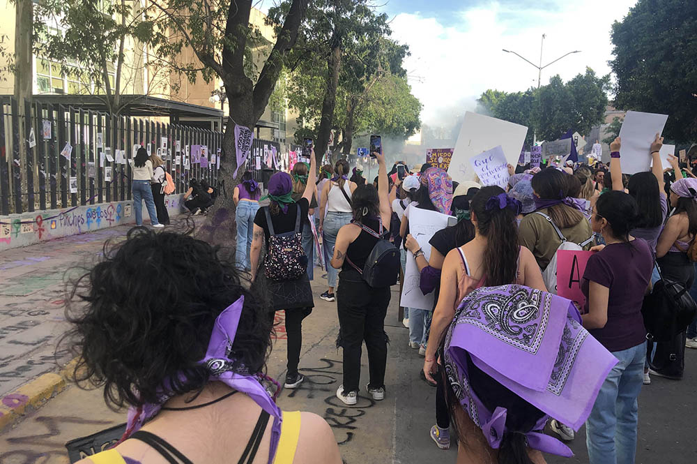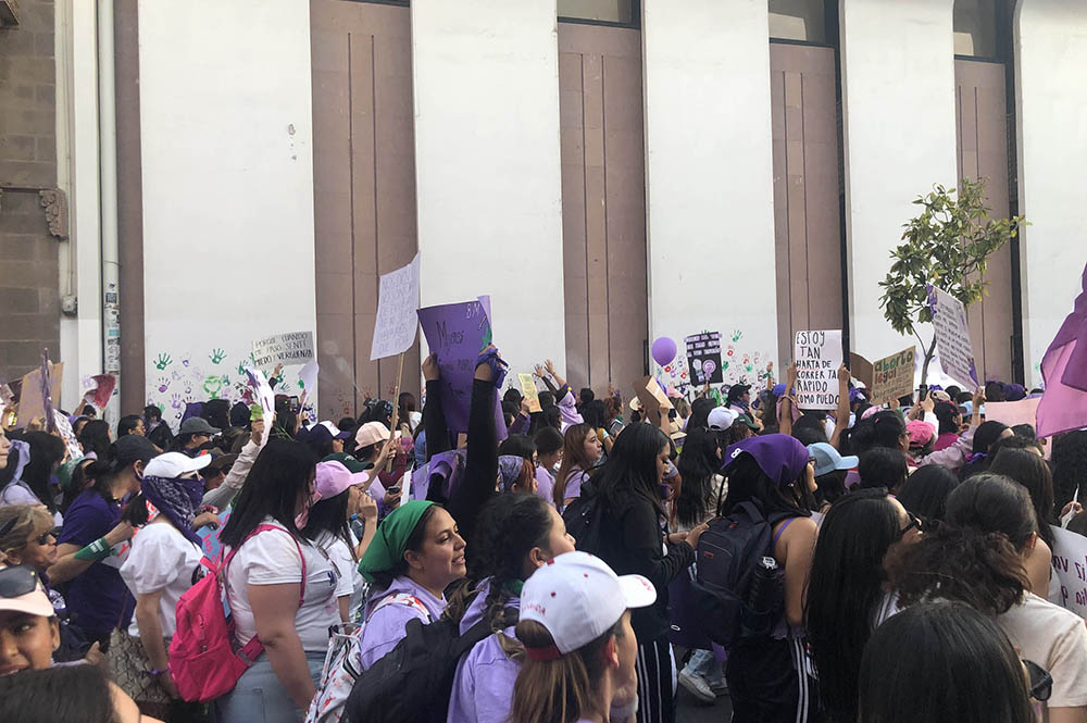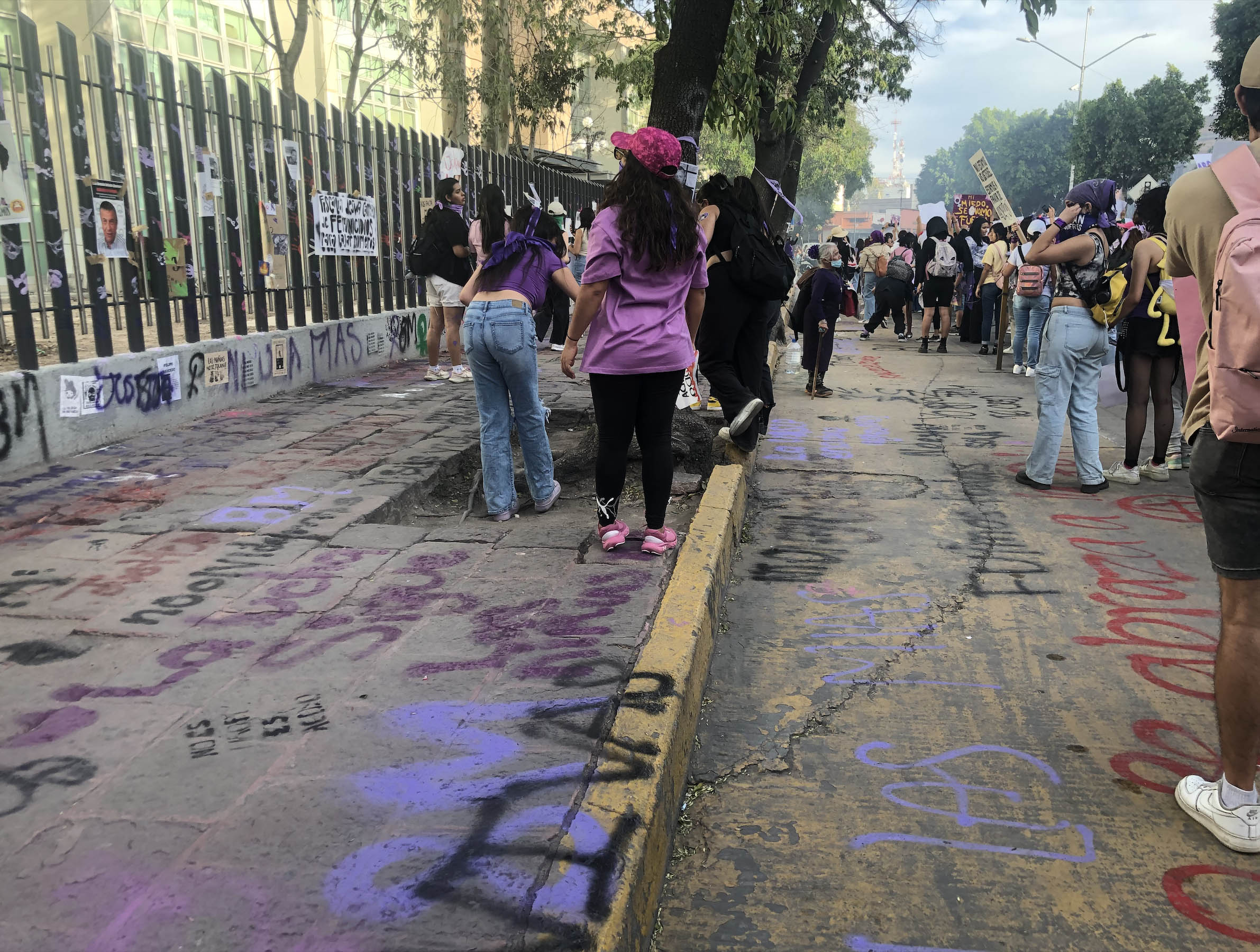 La movilización partió del Barrio de Tlaxcala y pronto, cuadras enteras del Eje Vial comenzaron a pintarse de color morado, conforme avanzaron niñas, adolescentes, universitarias, profesionistas, madres, abuelas… Todas unidas en una sola voz, la de la justicia.