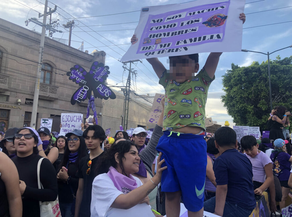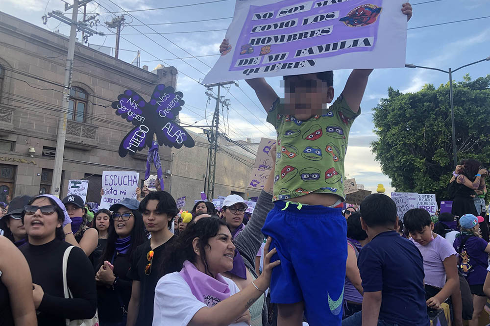 Ese pequeño de edad pero grande de corazón acompañó a las miles de mujeres que se apropiaron de las calles de San Luis Potosí y alzaron la voz para exigir: “Ni una más”.