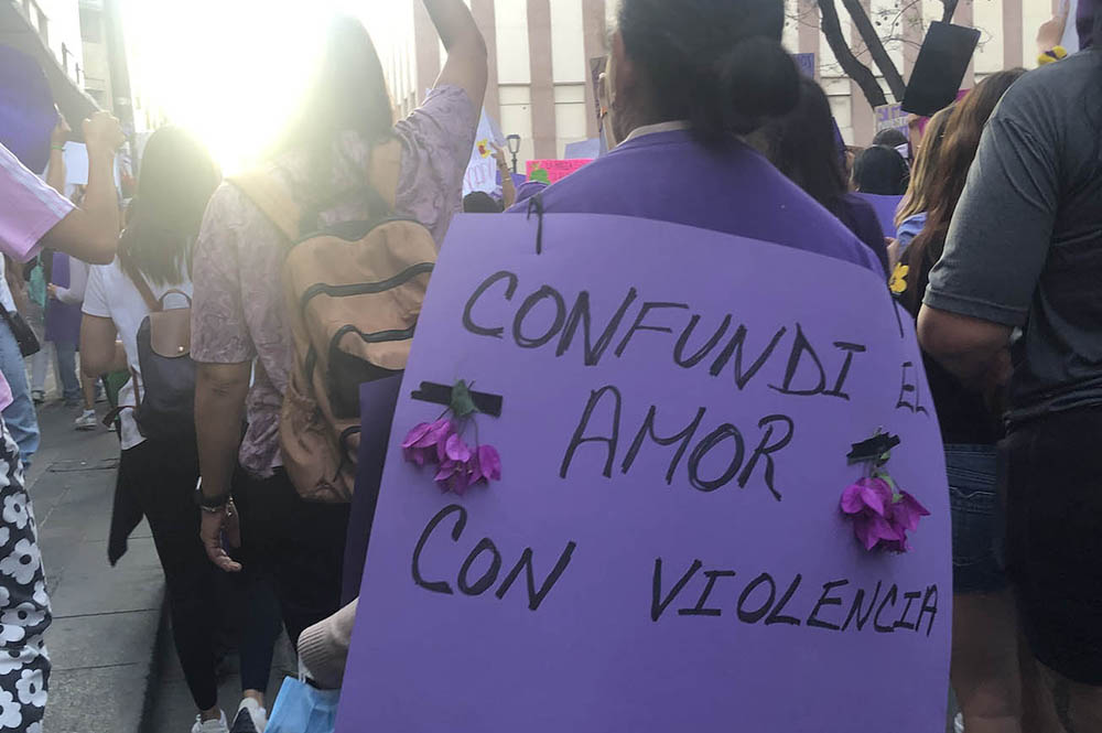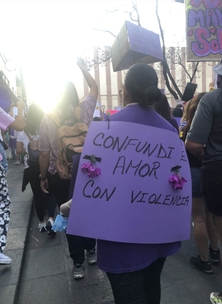 “Confundí el amor con violencia” fue el mensaje que una mujer ya entrada en años escribió en una cartulina. Con su mensaje en la espalda caminó por el Centro Histórico, donde levantó la voz por ella y por tantas otras que han sobrevivido a los diferentes tipos de violencia machista.