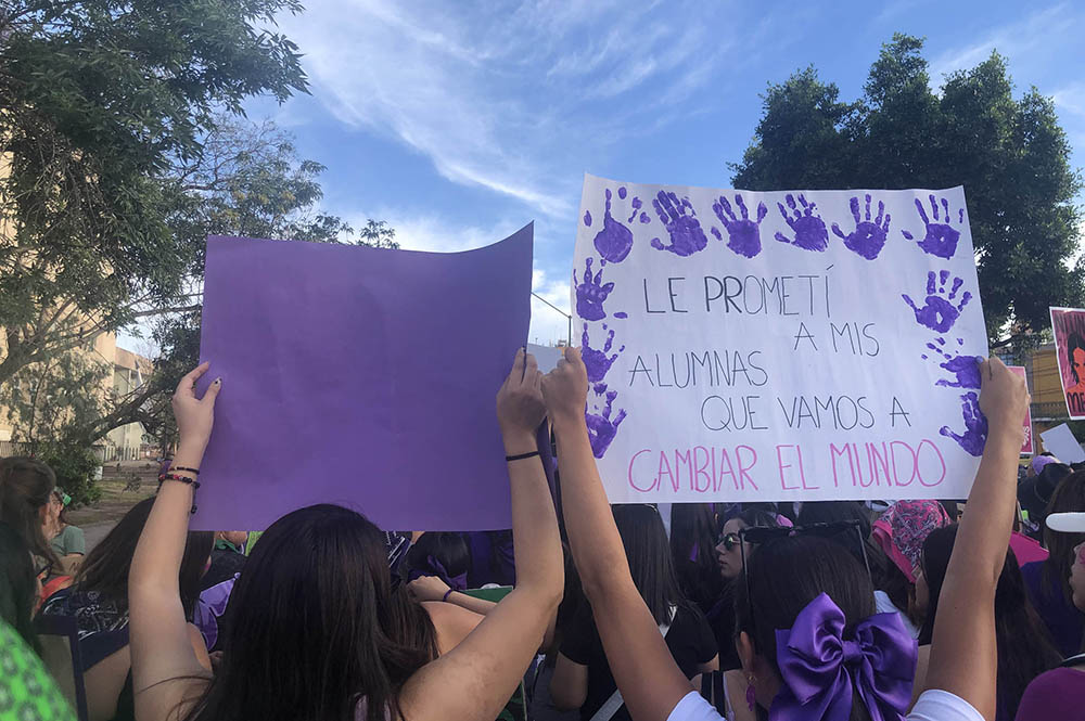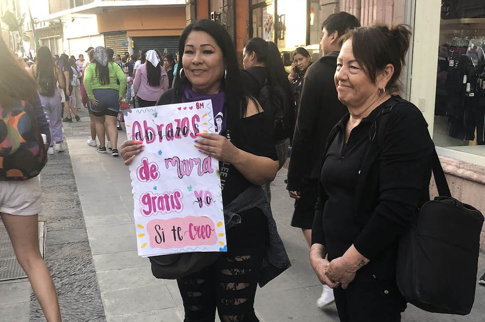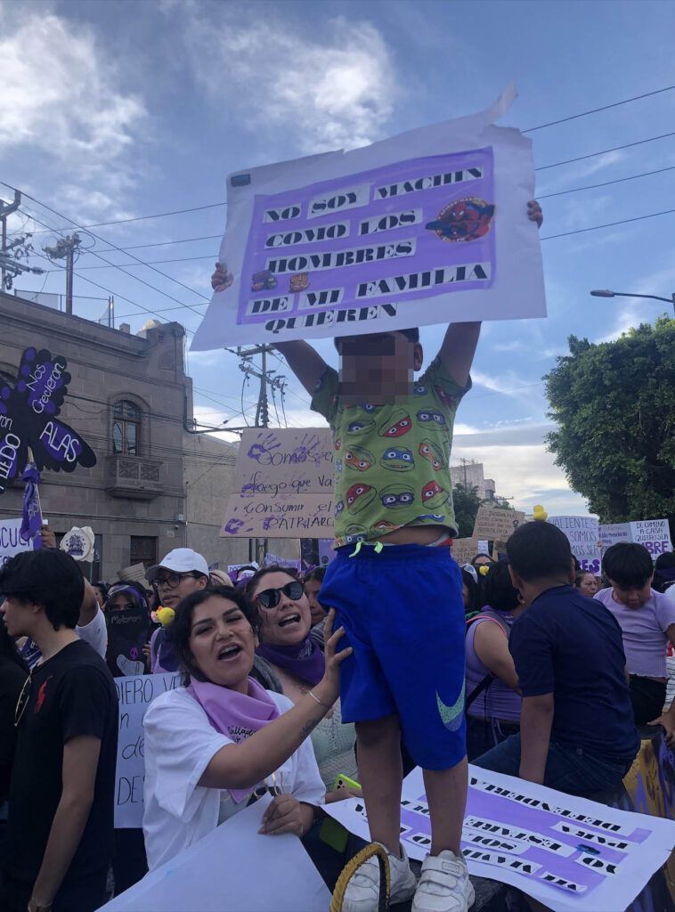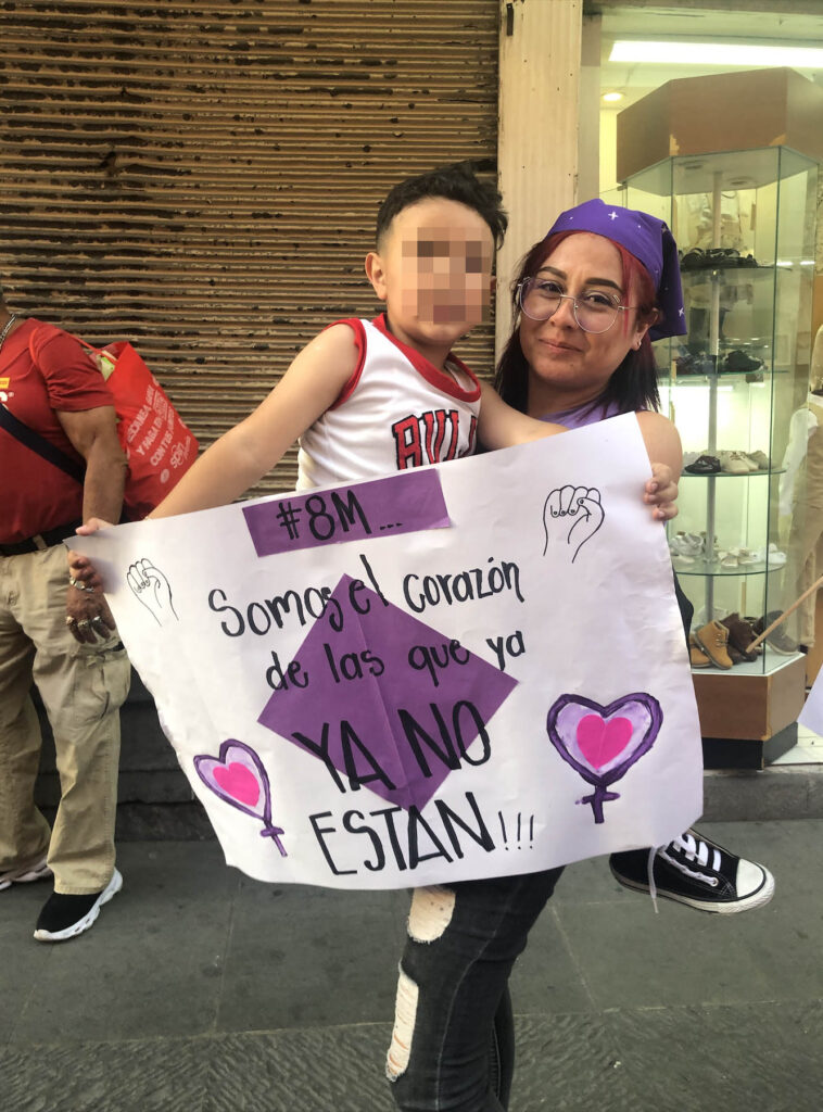 A unos metros de ahí, una mujer cargaba orgullosa a su hijo, quien portaba una cartulina con la leyenda: “Somos la voz de las que ya no están”. Con una sonrisa, la madre aceptó ser fotografiada. En esa sonrisa, mostró su orgullo por educar a un hijo consciente de la importancia de respetar a las mujeres y luchar junto a ellas.