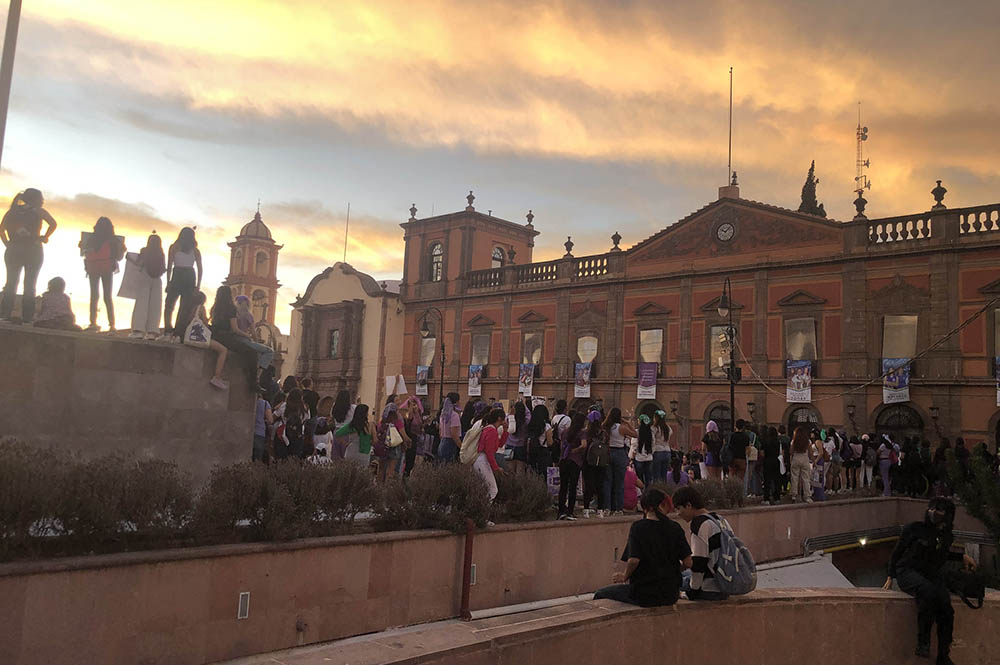 “No somos una, no somos 10. Pinche gobierno, cuéntanos bien”; “Fuimos todas”; “Me cuidan mis amigas, no la policía”; “La v… violadora, a la licuadora” y “Se va a caer, se va a caer, el patriarcado se va a caer” fueron algunas de las muchas consignas que retumbaron entre los muros del centro de San Luis Potosí.