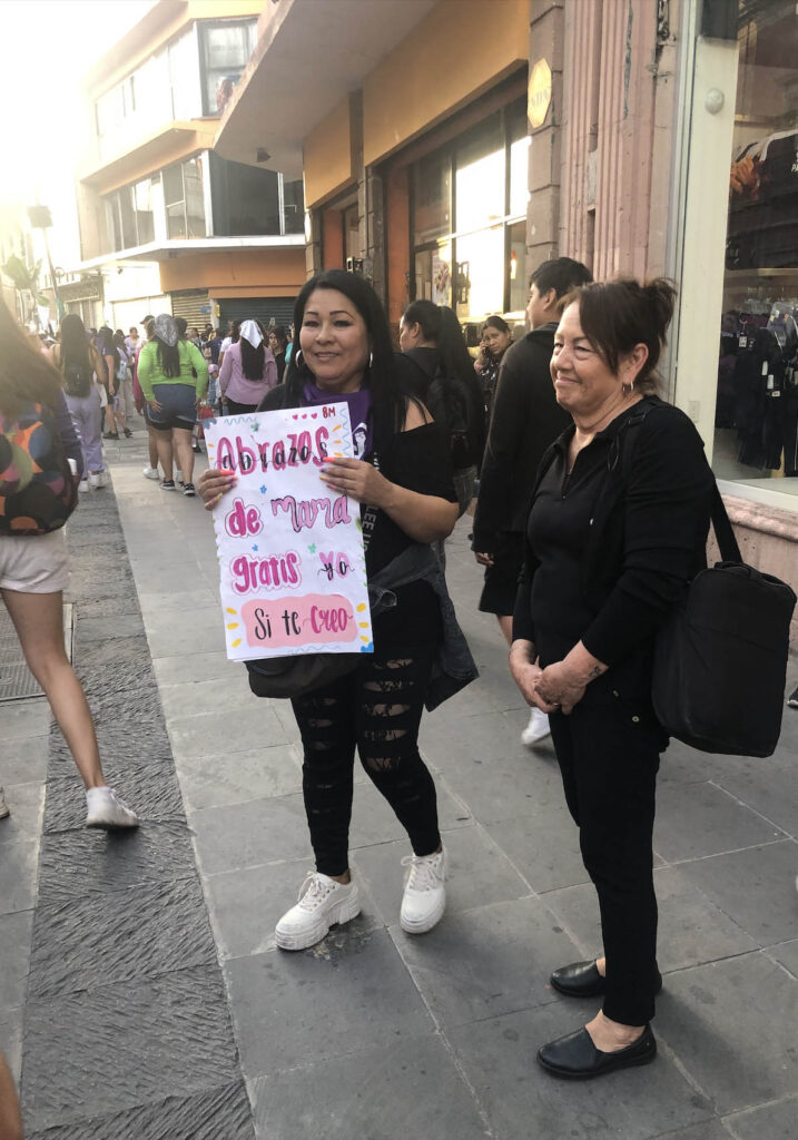 Otra mujer, acompañada por quien al parecer es su madre, se plantó en la calle Álvaro Obregón con el mensaje: “Se regalan abrazos de mamá gratis. Yo sí te creo”. Ambas, con los ojos llorosos y una sonrisa en el rostro abrazaron con un cariño genuino y cálido a todas aquellas mujeres que se acercaron, ya sea porque necesitaban una muestra de afecto o bien, para agradecerles por su gran gesto y solidaridad.