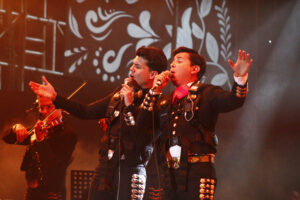 Después, los Hermanos Pérez Meza, junto al mariachi Purasangre, hicieron vibrar la plaza a pesar de las fallas iniciales en el sonido. Entonaron canciones que se han vuelto himnos, como “Cielo rojo” y “La ley del monte”, que motivaron los aplausos del público y para cantar “Tatuajes” se pusieron los chalecos sensoriales que las personas con discapacidad auditiva utilizan en los conciertos del festival, para poder sentir la música de cada concierto.