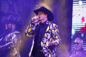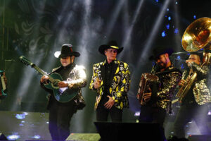 Con el clamor del público resonando en el aire, “Yo soy de San Luis Potosí” inundó el ambiente mientras Emmanuel salía del escenario. Con un nuevo saco, un sombrero amarillo y la emotiva melodía “Esa triste guitarra” musicalizada por un grupo norteño, el artista regresó, avivando la llama de la emoción entre las y los presentes.