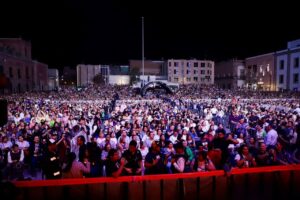 Emmanuel habló de cómo durante el encierro por la pandemia de covid decidió incursionar en el género regional mexicano con lo que llama su “norteño pop” y con las canciones “Cómo quieren que la olvide” y “Magdalena” hizo al público bailar en una plaza llena en su totalidad, incluso las tomas aéreas mostraron que la asistencia se extendió hasta las calles aledañas.