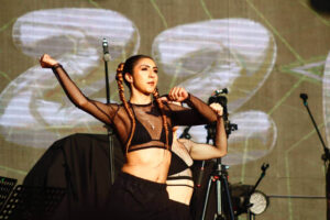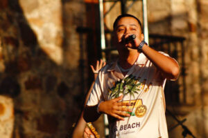 Todos anhelaban su presencia. Antes de él, Drezz. R. fue quien subió a la plataforma, irradiando la energía desde el Cerro de la Silla. Su actuación fue un torbellino de emociones mientras entregaba cada verso y lanzaba miradas cómplices al público, como si cada palabra fuera dedicada a una “ella” especial en su vida.