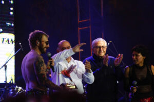 Poco después, el presidente municipal Enrique Galindo Ceballos y el director de Cultura, Daniel García Álvarez De la Llera se unió a él en el escenario para otorgarle un reconocimiento por su destacada participación en el festival “San Luis en primavera”. En un gesto simbólico, Sabino hizo referencia a su canción más reciente, “Colibrí”, destacando la figura representativa del festival, mientras el público estallaba en aplausos y vítores por su merecido reconocimiento.