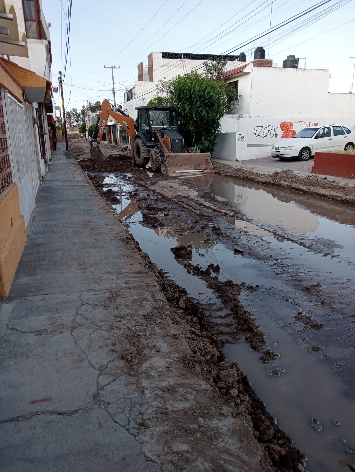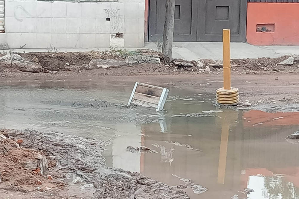 Además de ocasionar el desperdicio de miles de litros de líquido, los responsables de la rehabilitación de la colonia Retornos ya también han causado derrames de aguas negras.