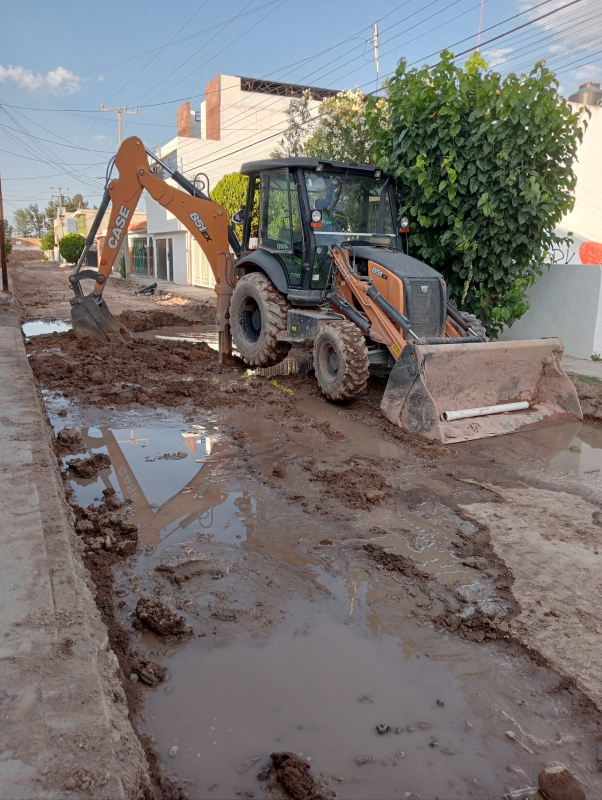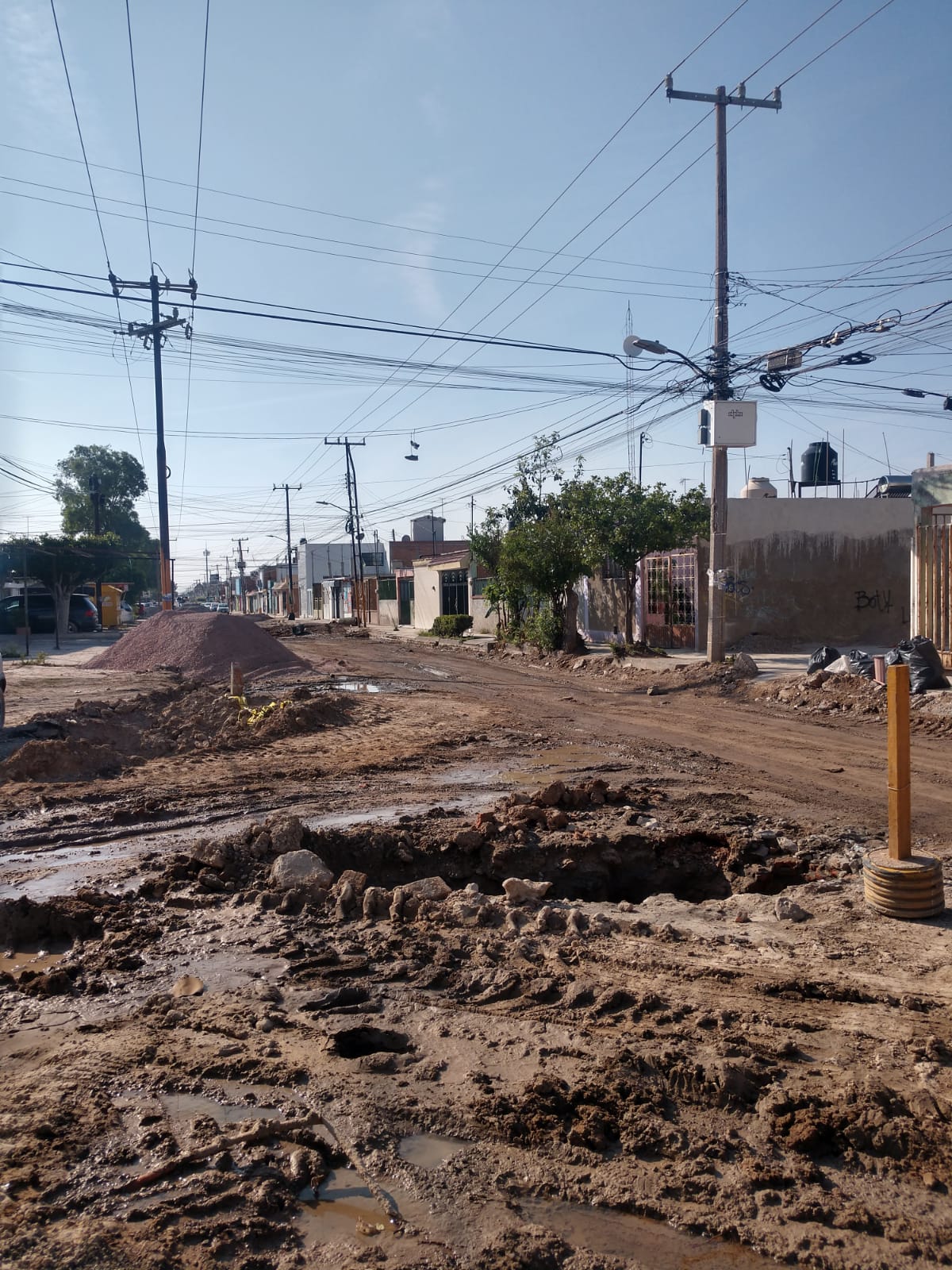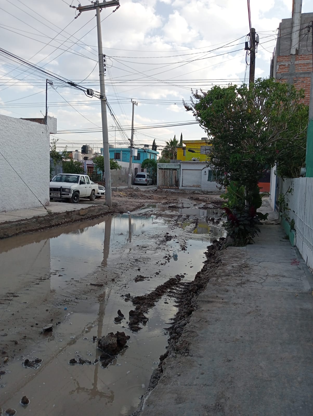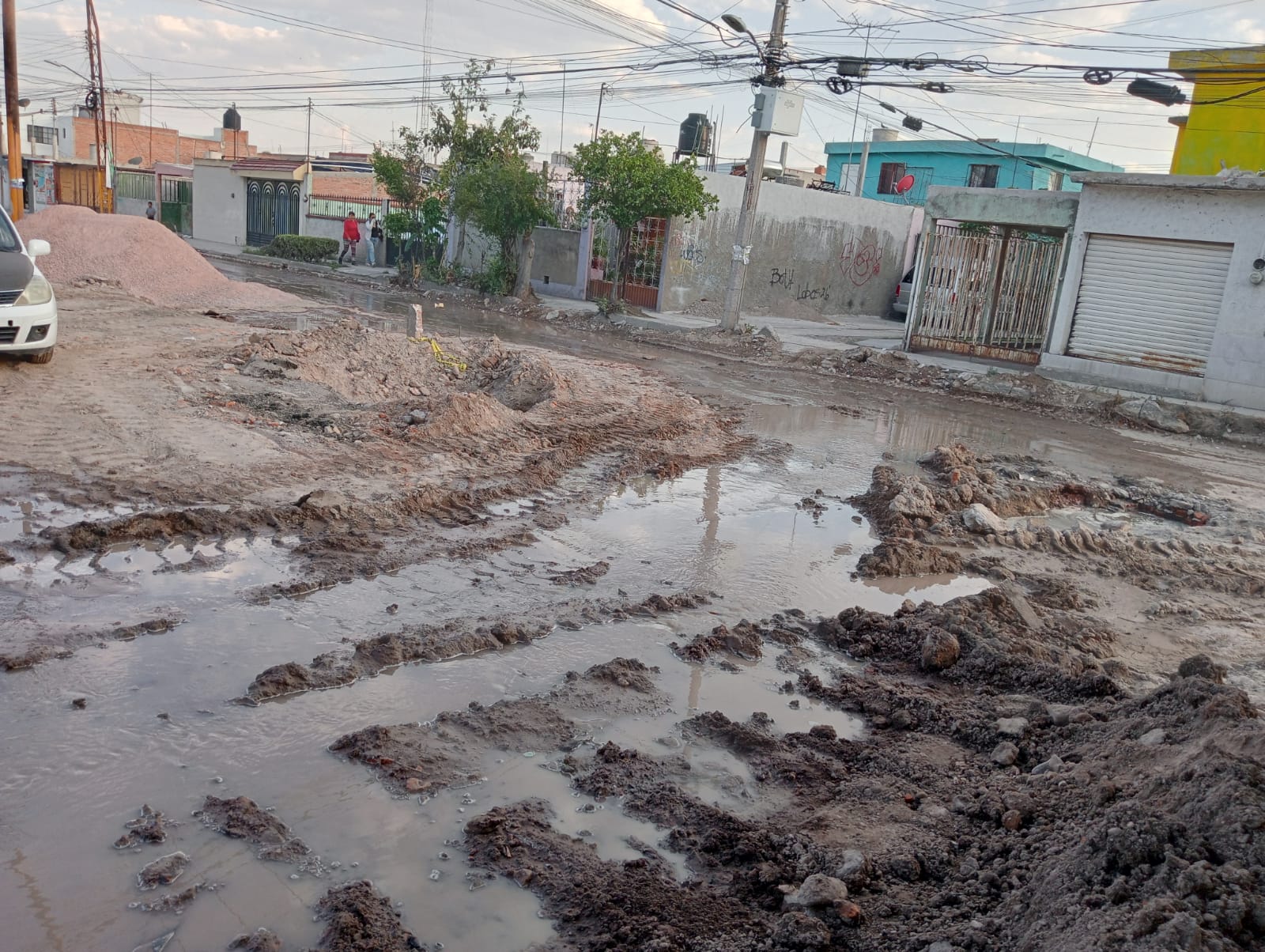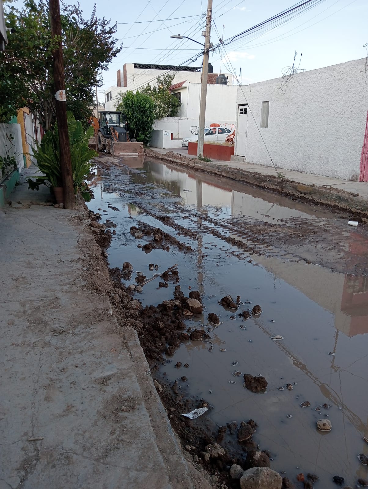 Las obras de rehabilitación que el gobierno estatal realiza en la colonia Retornos, al norte de la ciudad, provocaron una enorme fuga de agua potable, así como incontables fugas de aguas residuales, dejando las calles completamente anegadas.