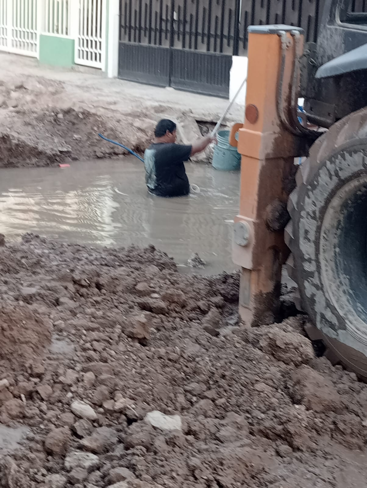 Sin que dicha fuga fuera totalmente controlada, la situación empeoró el martes, cuando los trabajadores de la obra a cargo de la Seduvop rompieron una tubería de agua potable en la calle Tenochtitlan, provocando una enorme laguna en la que incluso se pudo observar a uno de los trabajadores sumergido hasta la cintura. Y para complicar el cuadro, en el mismo tramo rompieron un drenaje de aguas negras.