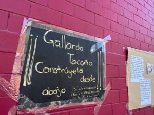 “¡¡Gallardo tacaño, constrúyela desde abajo!!” es tan solo una de las decenas de cartulinas y hojas tamaño carta pegadas en las fachadas de la Escuela Secundaria Técnica Número Uno y la Escuela Primaria Tipo 21 de agosto, dos instituciones de amplia tradición en San Luis Potosí y que el gobierno estatal pretende poner a disposición de la Federación, para reconvertirlas en la Universidad Rosario Castellanos.