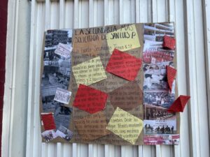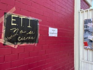 En el caso de la ETI son menos las cartulinas, y están más enfocadas a relatar la historia de la secundaria, aunque sí se puede leer “La ETI vive” y “ETI no se cierra”.