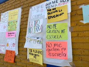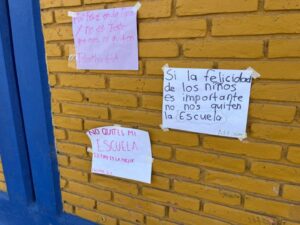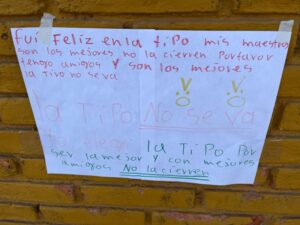 Con plumones, lápices y lapiceros. En cartulinas y hojas blancas de colores. Algunas con dibujos de niños llorando, corazones o caritas tristes, las manifestaciones de protesta en la escuela Tipo tienen casi todas un común denominador: letras de niñas y niños que defienden la escuela en la que estudian.
