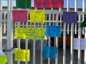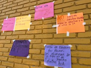 Después de las protestas dentro y fuera de la Técnica Número 1 y la Tipo, los mensajes de estudiantes y personal aún permanecen en los muros de ambos planteles.