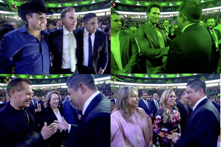 En primera fila lo mismo se ubicaron el gobernador de Nuevo León, Samuel García; la ministra Yazmín Esquivel y el senador del Partido Verde, Manuel Velasco, que el boxeador Julio César Chávez; la conductora de televisión de origen potosino, Rocío Sánchez Azuara; el cantante Julión Álvarez y el actor de telenovelas, Sebastián Rulli.