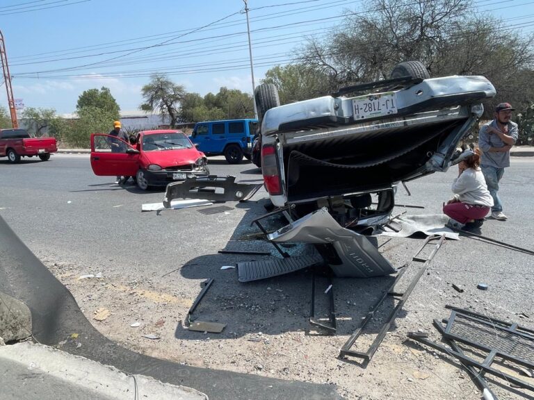Una camioneta terminó volcada la mañana de este domingo tras un accidente registrado en el Anillo Periférico, en el tramo comprendido entre la carretera a Zacatecas y la avenida Pánfilo Natera, en la colonia La Unión.