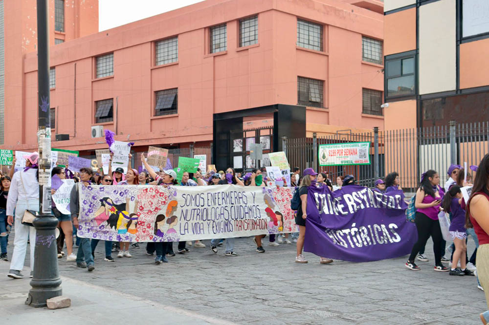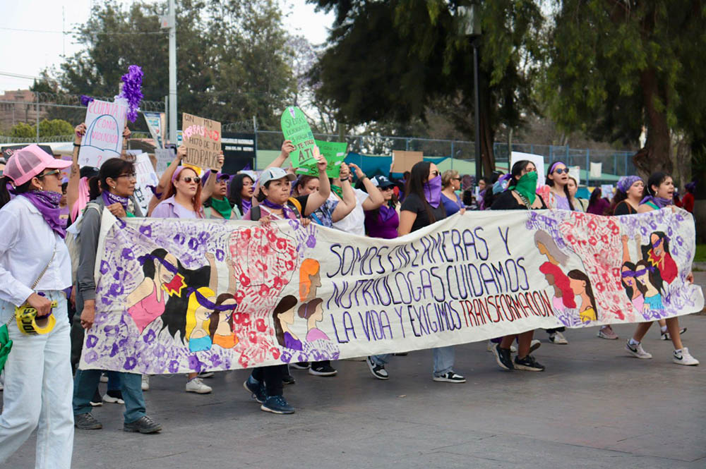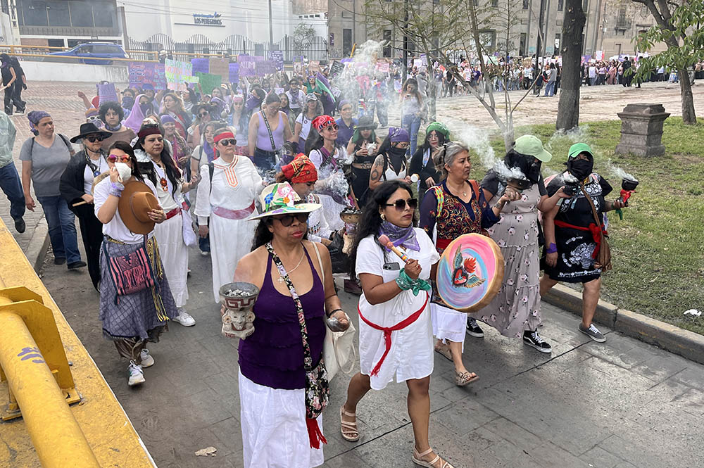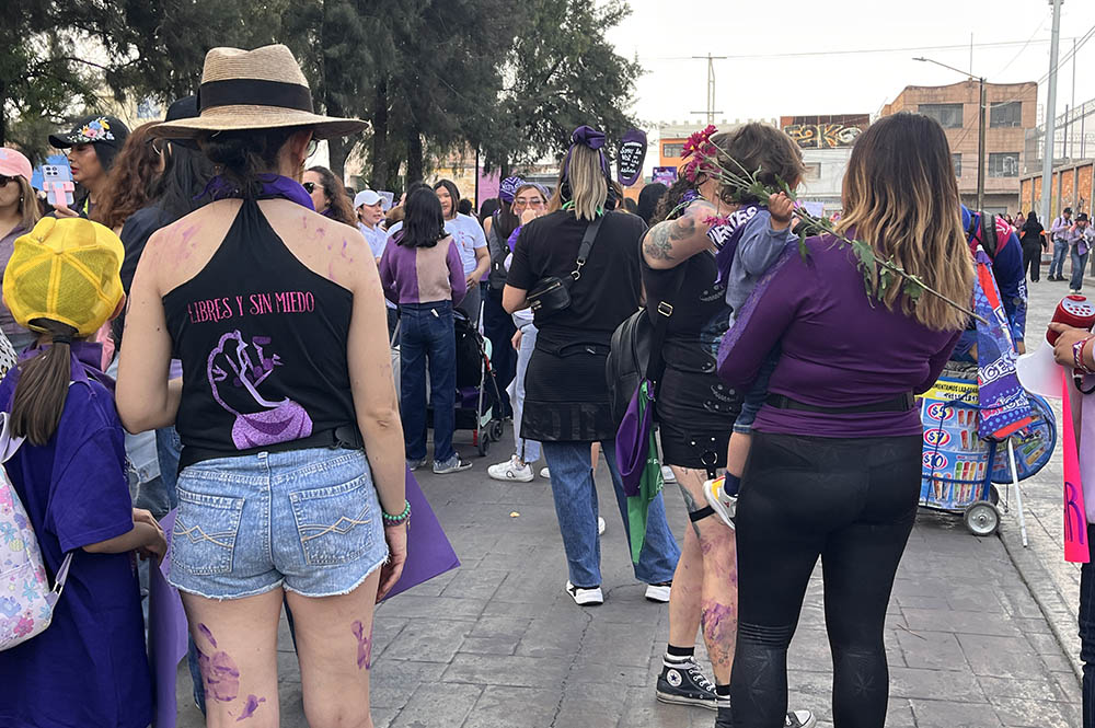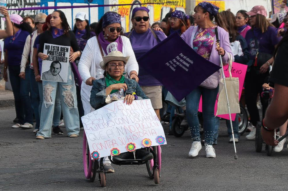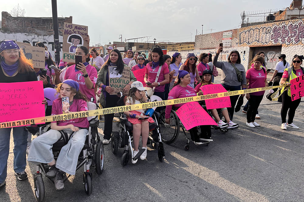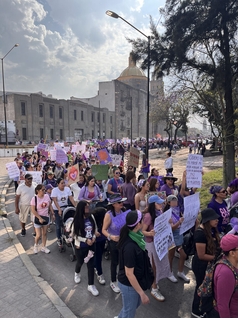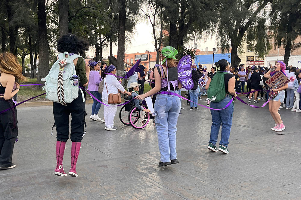 La marcha se dividió en varios contingentes: familias víctimas de feminicidio, madres buscadoras, mujeres con discapacidad, cuidadoras, embarazadas, madres, adultas mayores, maestras, familiares de mujeres privadas de la libertad, universitarias, mujeres sobre ruedas, danzantes, sahumadoras y todas aquellas mujeres que decidieron alzar la voz.