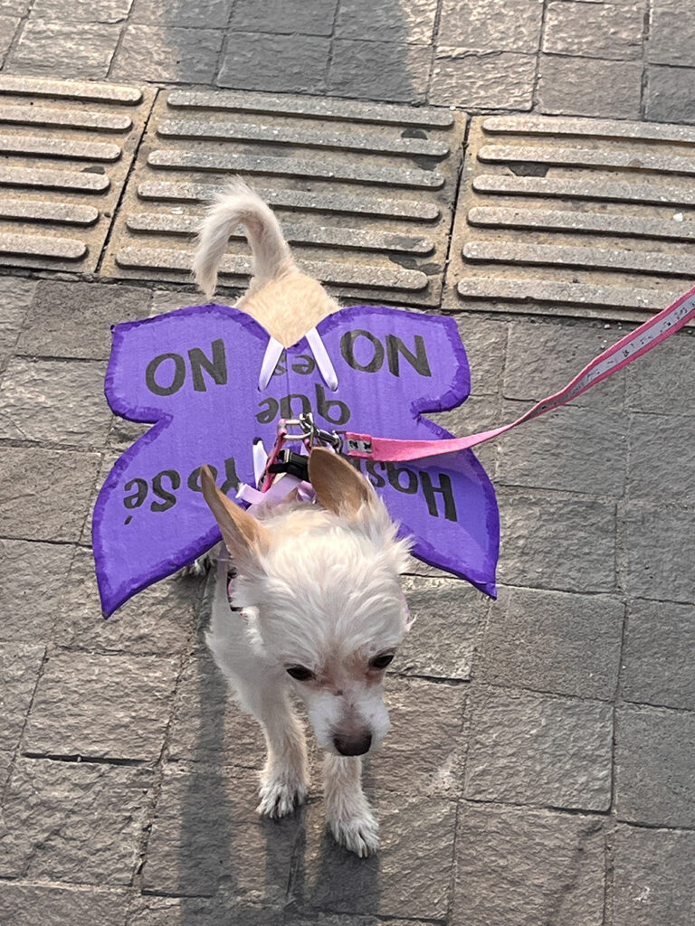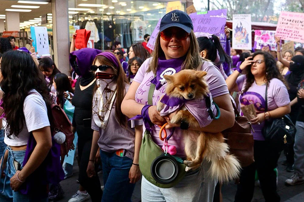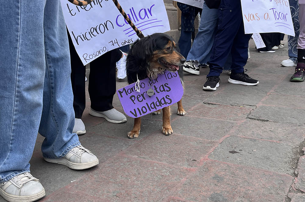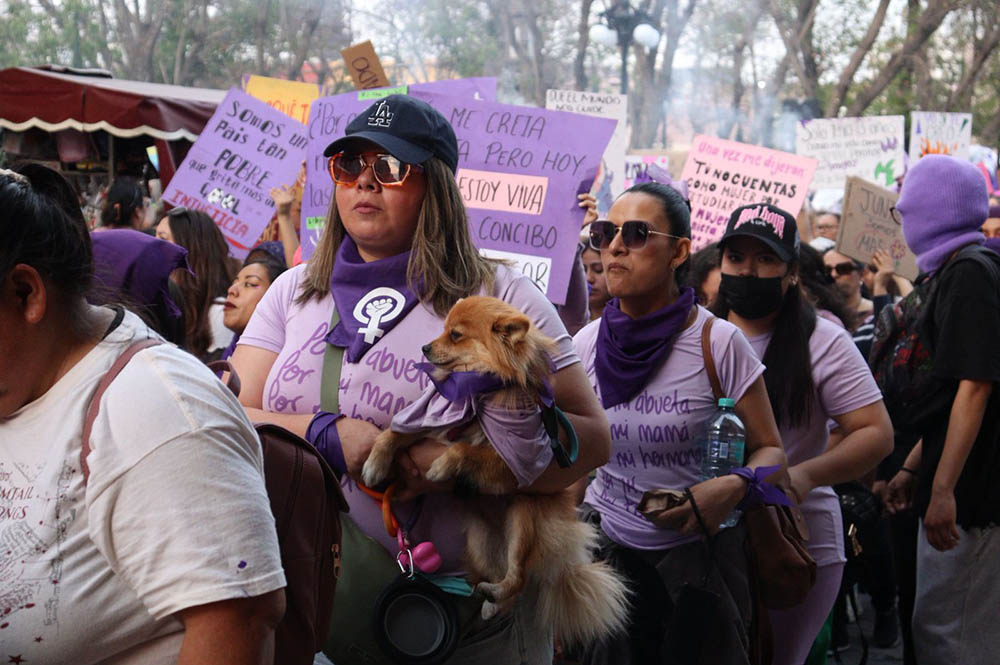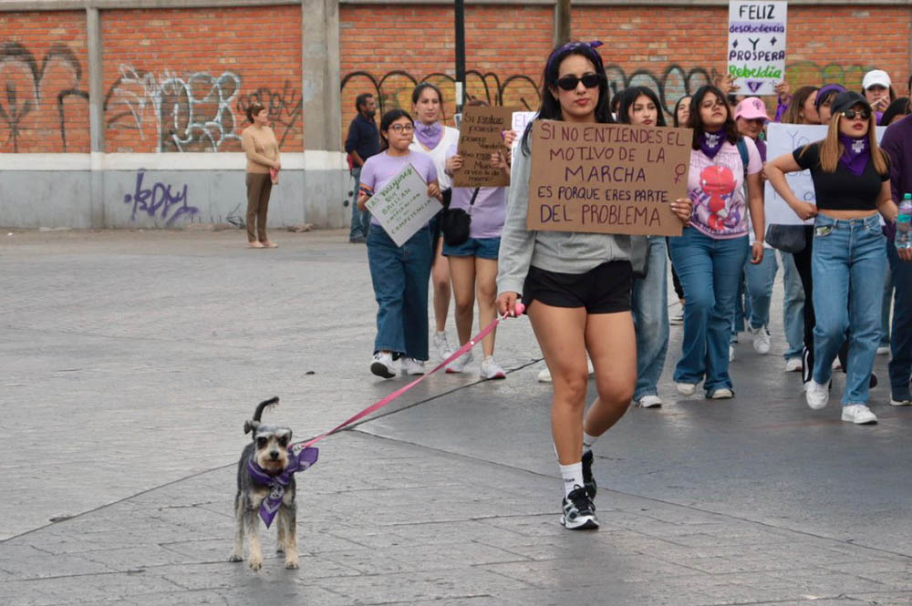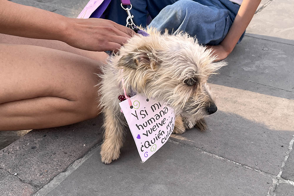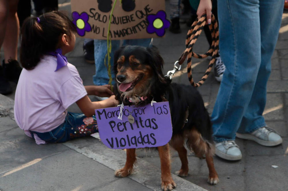 Tampoco faltaron las mascotas, algunas se estresaron por el sonido de los cohetes detonados por el “bloque negro”, y en Fundadores se reportó que un perrito se había extraviado, aunque horas después trascendió que ya estaba a salvo con su familia. “Menos machitos, más michitos”, “Hasta yo sé que no es no”, “Y si mi humana no vuelve, ¿quién me cuida?”, “Marcho por las perritas violadas”, “Si mi Karen no regresa, quemen todo”, decían algunos de los letreros que llevaban los acompañantes de cuatro patas.