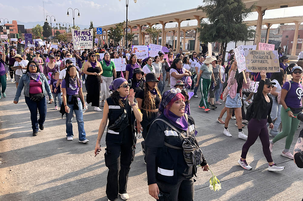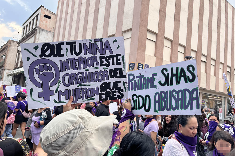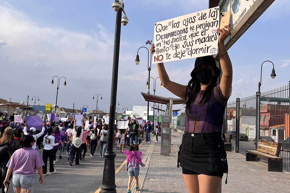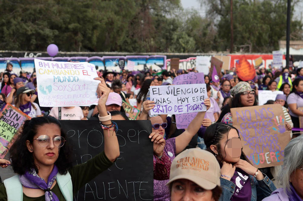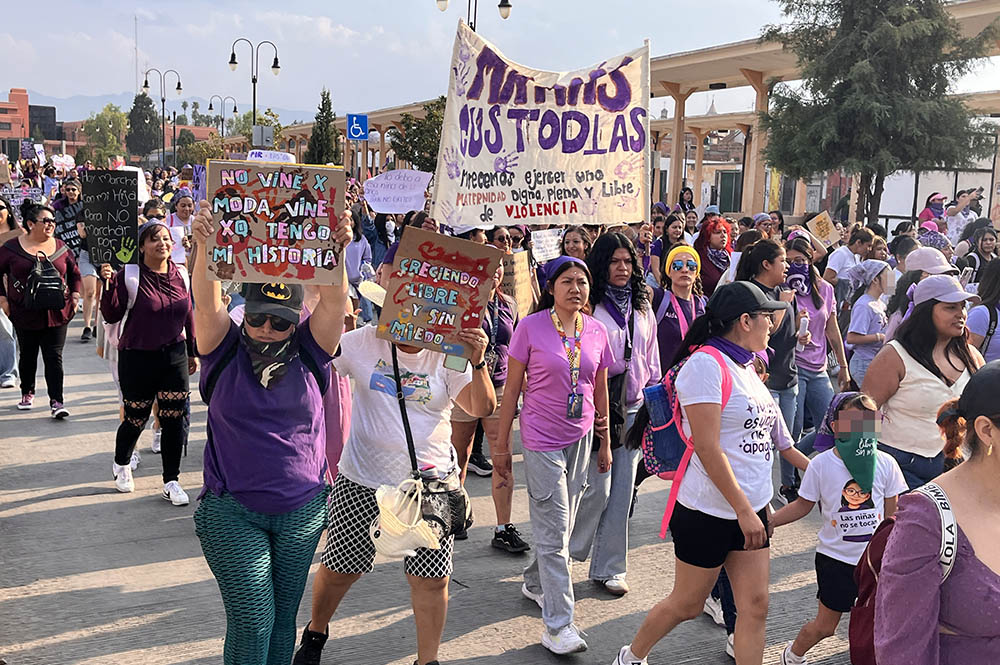 Madre e hijo formaron parte de una movilización integrada por miles de personas que, como cada año, recordaron a las autoridades, pero sobre todo a la sociedad, la persistencia de todo tipo de agresiones contra las mujeres, desde la violencia física, psicológica y sexual, hasta la económica, emocional, patrimonial, política, digital, simbólica, obstétrica y feminicida.