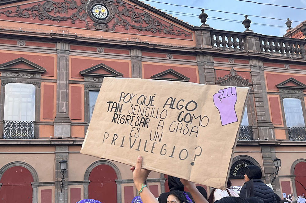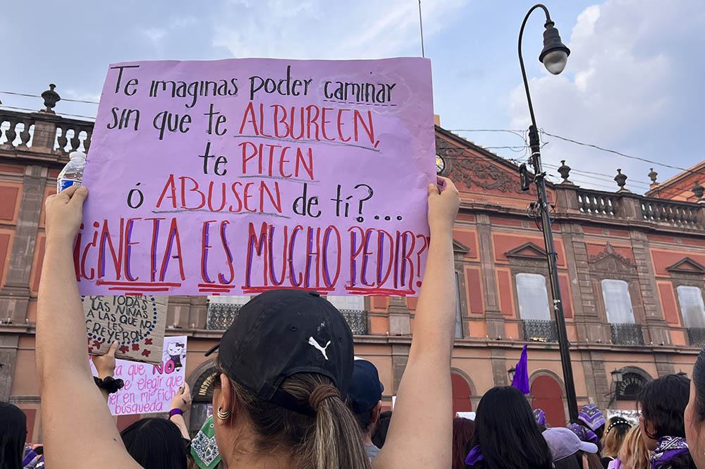 Y la inseguridad que perciben las mujeres en la vía pública también se hizo notar a través de leyendas como: “¿Te imaginas poder caminar sin que te albureen, te piten o abusen de ti? ¡¿Neta es mucho pedir?!”, “Ojalá la sociedad señalara más a los agresores que a las feministas” y “¿Por qué algo tan sencillo como regresar a casa es un privilegio?”